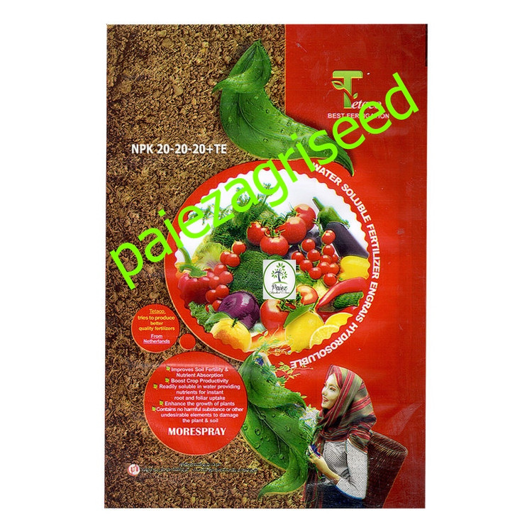 کود کامل تتاکو مدل MORESPRAY-NPK 20-20-20+TE بسته یک کیلوگرمی
