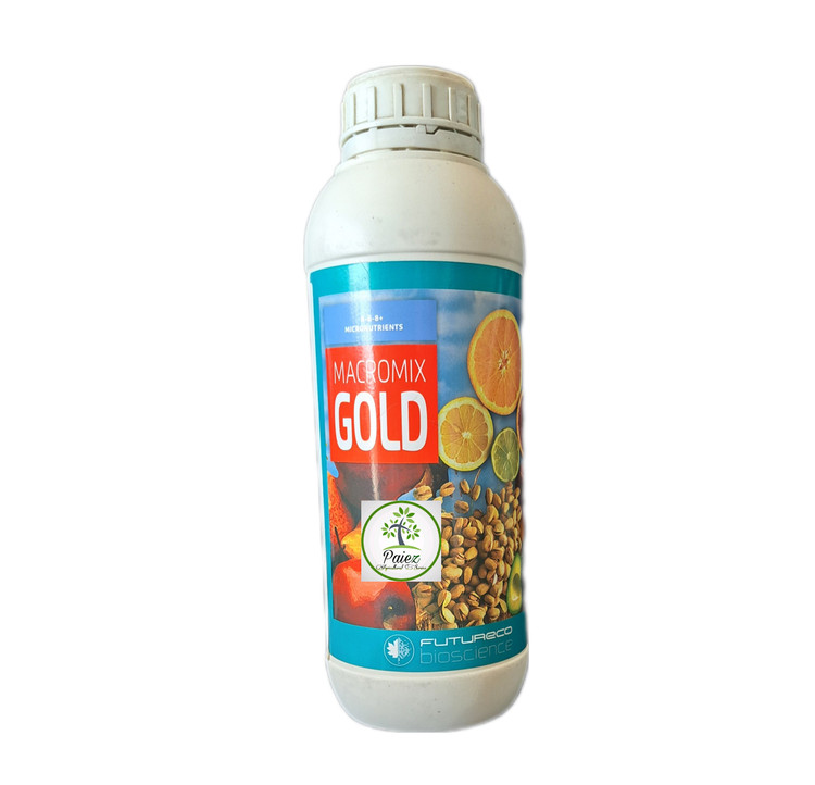 کود ماکرومیکس گلد تلفیق کاملی از همه عناصر مورد نیاز گیاهان شامل عناصر پر مصرف و کم مصرف است. این کود با دارا بودن عناصر اصــلی ازت، فسفر و پتاســیم باعث رشــد و توسعه ریشه گــیاه میگردد. همچنین با دارا بودن عناصر ریزمغذی موجب سلامت و شادابی گیاه و مقاومت در برابر آفات و بیماریها شده و ماندگاری بیشتر میوه، زودرسی و مقاومت در برابر تنشهای محیطی را در پی خواهد داشت. میزان مصرف این کود در سیستم آبیاری؛ 3 تا 5 لیتر در هکتار و به صورت محلولپاشی؛ 3 لیتر در هزار لیتر آب میباشد.