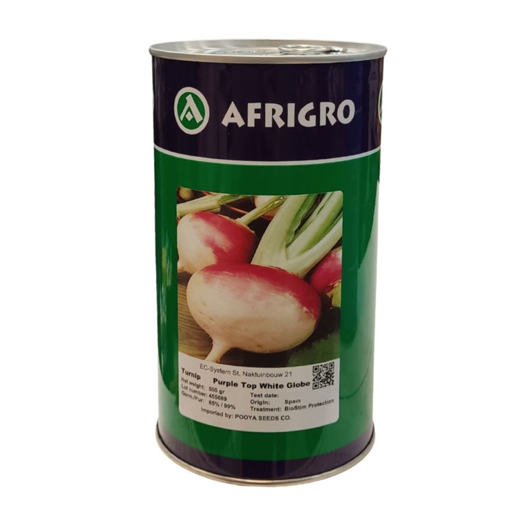 شلغم آفریگرو یکی از بهترین رقم های شلغم در بازار ایران و جهان است. این بذر در بسته بندی قوطی ۵۰۰ گرمی عرضه میشود. اورجین این بذر کشور اسپانیاست.